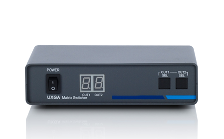 VGA信号切换器用于计算机高分辨率图像信号的切换。其输入、输出端口均为HD15PIN(VGA)。可将多路输入信号任意选择其中一路输出到显示设备。控制方式包括面板手动控制、红外遥控、RS-232控制等。